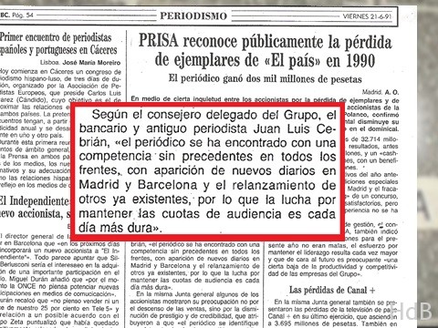 El 21.06.1991 el diario ABC publicó una página sobre la Junta de Accionistas del Grupo PRISA, en el que se hablaba de sus resultados en EL PAÍS, la Cadena SER y Canal PLUS.