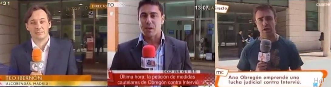 Ese mismo día 4.06.2008 los espacios ‘El Programa de Ana Rosa’ (D. Miguel Ángel Nicolás), ‘Espejo Público’ (D. Teo Ibernon) y ‘Las Mañanas de Cuatro’ hacen una cobertura desde los juzgados sobre el pleito de Dña. Ana Obregón para intentar retirar de la calle la edición de INTERVIÚ.