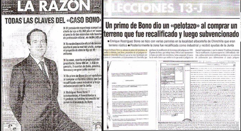 El Partido Popular buscaba ganar aquellas elecciones presentando como candidato al hasta entonces alcalde de Toledo, D. Agustín Conde y LA RAZÓN de D. Luis María Anson comienza a publicar una serie de portadas denunciando el sospechoso enriquecimiento de D. José Bono y de miembros de su familia como su primo. Todo parecía indicar que LA RAZÓN buscaba perjudicar la candidatura electoral del político y favorecer la de D. Agustín Conde para las elecciones del 13 junio.