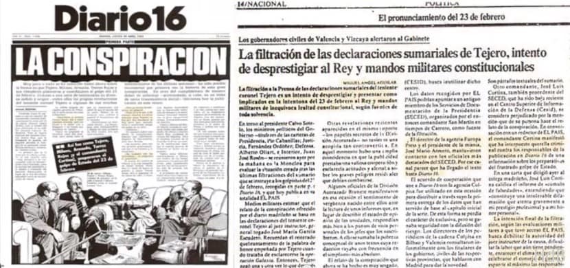 El 30.04.1981 con el título ‘La Conspiración’ el periódico DIARIO16 logró la filtración de una parte del sumario del 23-F, aún en instrucción, que incluía los primeros interrogatorios a los principales acusados, incluyendo al coronel Antonio Tejero Molina, que desvelaba como planificó, junto al General Jaime Milans del Bosch.