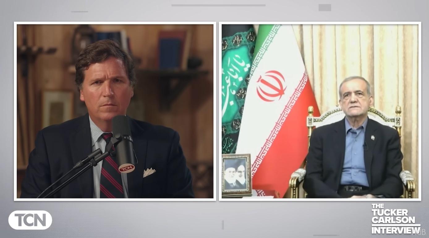 El 7 de julio de 2025 Tucker Carlson sube a su canal de Youtube una entrevista con el presidente de Irán, Masoud Pezeshkian.
