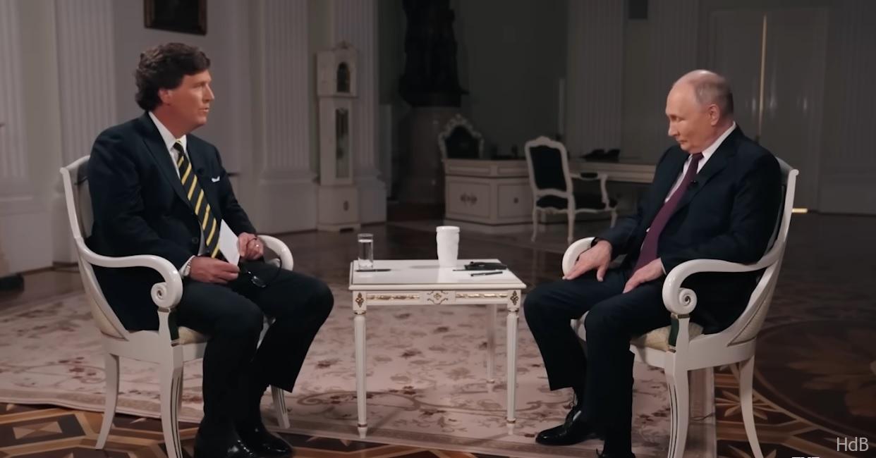 El 9 de febrero de 2024 Tucker Carlson sube a sus redes sociales una entrevista suya al presidente de Rusia, Vladimir Putin.