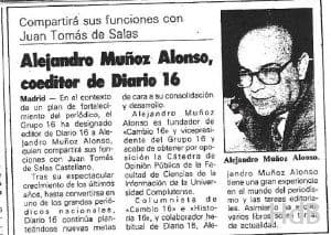 El 22.04.1984 D. Alejandro Muñoz Alonso fue designado co-editor de DIARIO16.