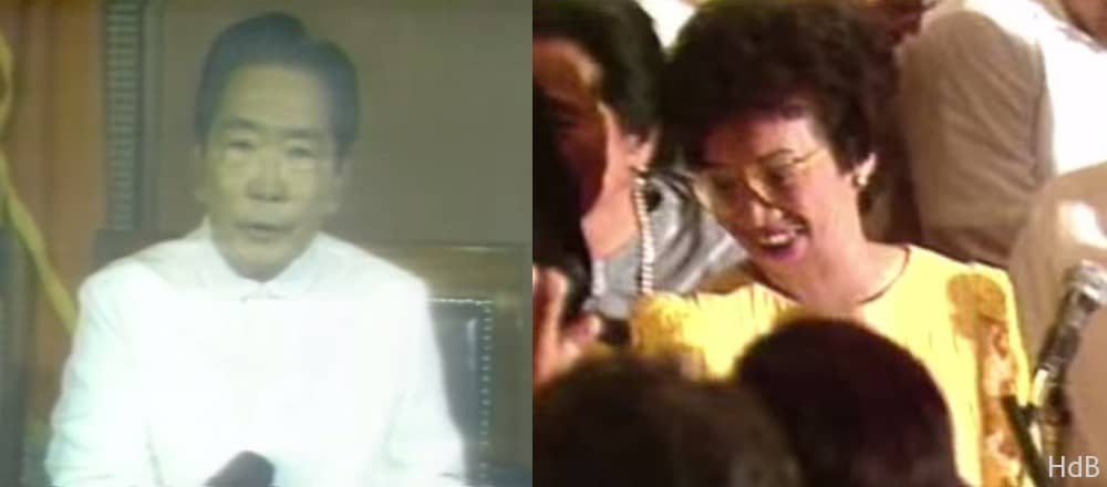 Cae la dictadura de Ferdinand Marcos en Filipinas a manos de los partidarios de Cory Aquino tras una revuelta popular causada por acusaciones de fraude electoral