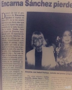 - El 8.01.1991 el programa ‘Y Ahora Encarna’ de ANTENA 3 TV incluyó una entrevista de Dña. Encarna Sánchez entrevistándose así misma. Y un coloquio en un plató decorado como un ‘ring’ con tres personajes de sociedad y tres periodistas.