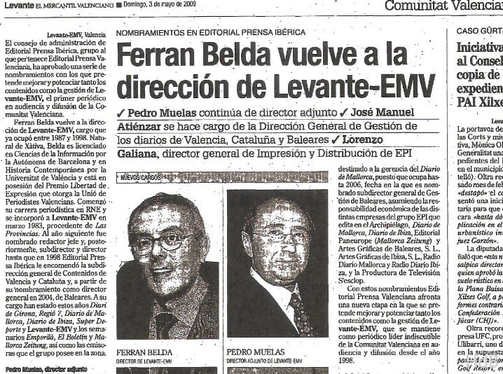 El 1 de mayo de 2009 el Grupo Prensa Ibérica anunció la jubilación de D. Jesús Prado Sánchez como Consejero delegado de Editorial Prensa Valenciana, responsable de los periódicos Levante-EMV y La Información de Valencia. Prado fue director de La Información entre 1971 y 1983 y la de Levante entre 1983 y 1987. El día 3 de mayo D. Ferrán Belda Pérez es nombrado director de Levante-EMV, siendo la segunda vez que asume este cargo.