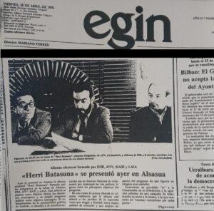El 27.04.1978 se presentó la coalición Herri Batasuna (HB) formada por LAIA, ESB, ANV y HASI