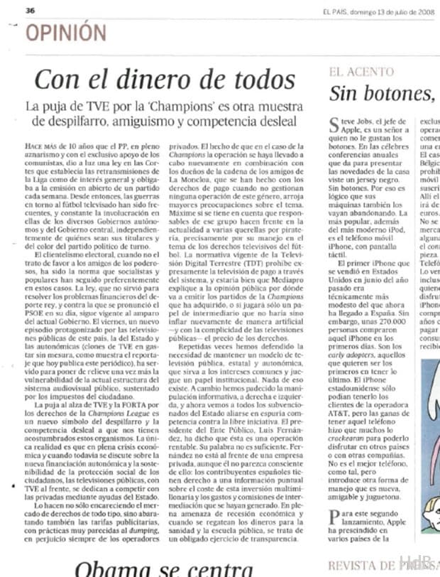 El 13 de julio de 2008 el diario EL PAÍS (Grupo PRISA) protestó contra la puja de TVE por la emisión de la Copa del Rey.