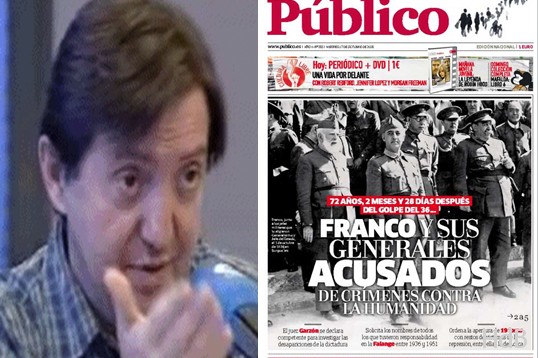 El 17.10.2008 el diario PÚBLICO colocó en su portada al General Franco (fallecido en 1975) para anunciar su procesamiento por el juez D. Baltasar Garzón, hecho que fue comentado en el programa ‘La Mañana’ de la Cadena COPE.