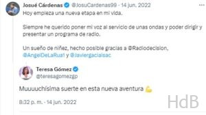 El 14 de junio de 2022 D. Josué Cárdenas Gómez anunció el inicio de su programa en DECISIÓN RADIO.