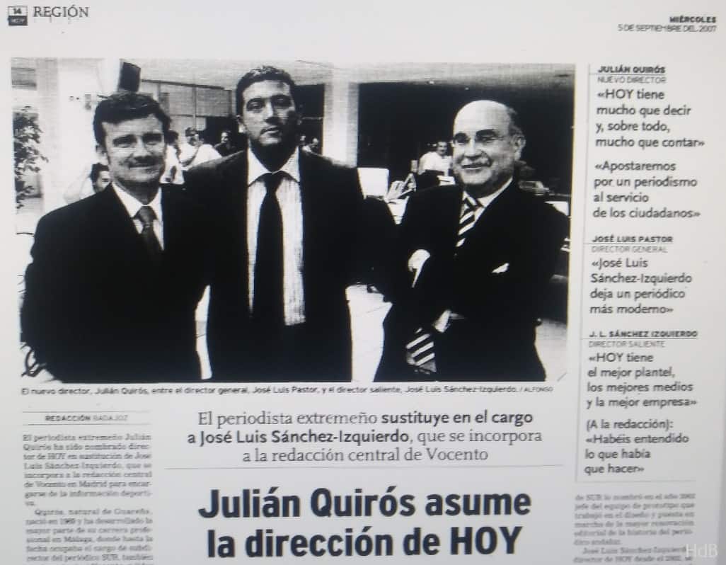 Julián Quirós nombrado por Vocento nuevo director del diario HOY de Extremadura en sustitución de José Luis Sánchez-Izquierdo