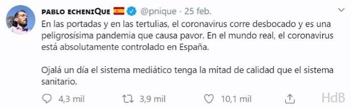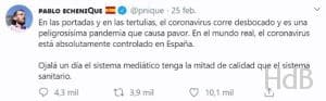 Campaña de burlas de famosos, políticos y periodistas contra los que previenen frente al Coronavirus por considerar que es ‘alarmismo’ injustificado: Pablo Echenique, Anabel Alonso