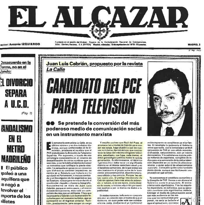 En su edición del 15 de septiembre de 1979 la revista LA CALLE de D. César Alonso de los Ríos (del PCE), en un artículo firmado por D. Raúl del Pozo (del PCE), sugerían a D. Juan Luis Cebrián como nuevo director de TVE.