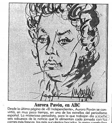 La firma ‘Aurora Pavón’ que se hizo célebre en la última página del diario EL INDEPENDIENTE, era el seudónimo en el que se ocultaba un conjunto de cuatro periodistas progresistas: D. Pablo Sebastián, D. César Alonso de los Ríos, D. Fernando G. Delgado y D. Raúl del Pozo. Pero con el paso del tiempo sólo D. Pablo Sebastián permaneció detrás de esa firma de EL INDEPENDIENTE que ahora, tras abandonar el Sr. Sebastián el diario (se le había ofrecido el cargo de Consejero Delegado que se le había ofrecido al periódico).