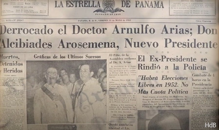 Panamá: Derrocado el presidente, Doctor Arnulfo Arias Madrid, acusado de querer establecerse como dictador, le sucede su Vicepresidente Alcibiades Arosamena